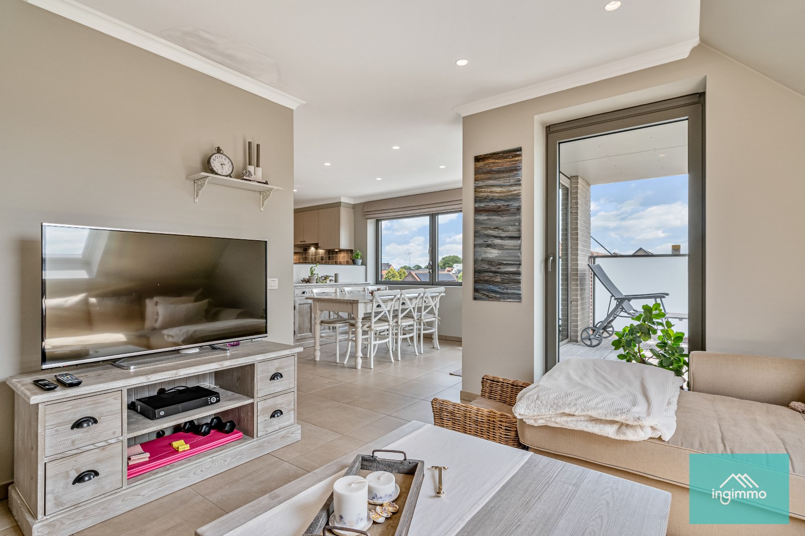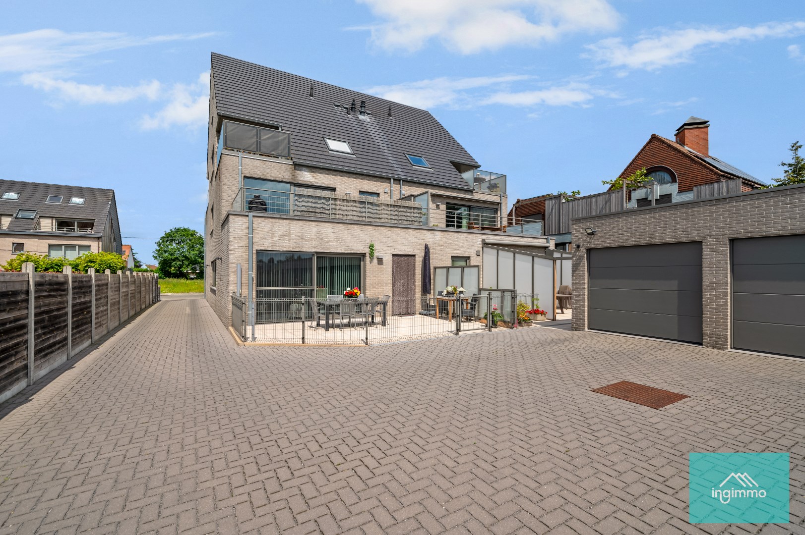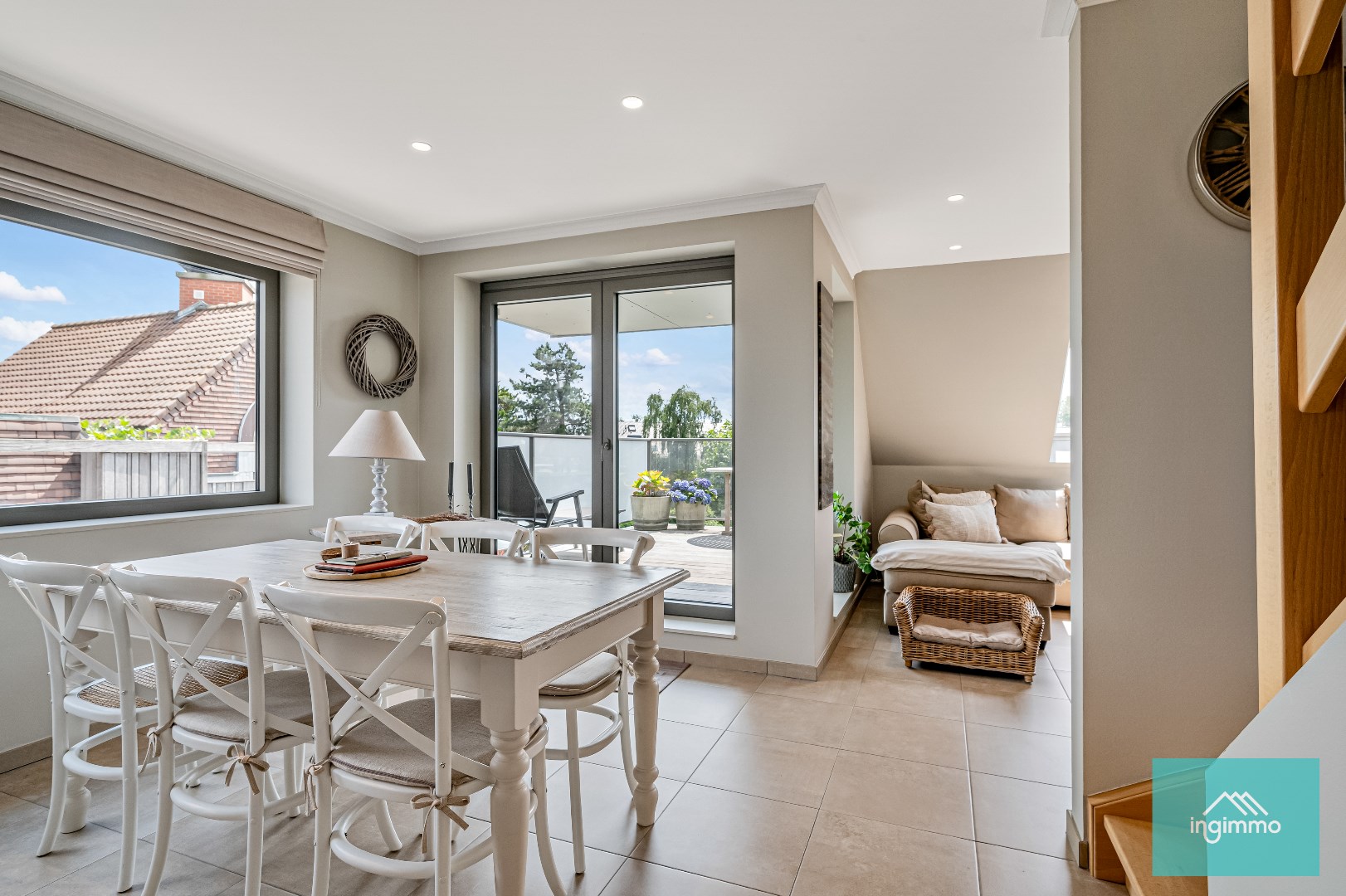 In Residentie ‘Celine’ bevindt zich dit ruim instapklaar appartement van maar liefst 133 m² op de 2de en 3de verdieping. Gelegen op centrale locatie in Ertvelde, dichtbij het centrum, winkels en uitstekende verbinding met de R4. Het energielabel A zorgt ervoor dat het appartement heel energiezuinig is. Elektriciteit is volledig conform. De indeling van dit mooie duplex-appartement is alsvolgt: de lift brengt ons naar de 2de verdieping waar wij binnenkomen in de inkomhal met rechtstreekse toegang tot de mooie knusse living en volledig ingerichte keuken met zicht op het zonnig terras, handige berging, ruime slaapkamer met toegang tot 2de terras, badkamer en gastentoilet. De 3de verdieping bestaat uit een 2de volwaardige slaapkamer met eigen dressing, badkamer, apart toilet en 2de berging. Extra grote troeven van dit appartement:: recente bouw (quasi nieuwbouw van 2017), vloerverwarming, 2 mooie terrassen, 2 trendy badkamers, 2 praktische bergingen en ruime autogarage van 23 m² die reeds INBEGREPEN is in de prijs. Kortom dit appartement is een ideale kans om heel comfortabel te wonen. Bel Laurent 0492 08 45 74 voor een afspraak.