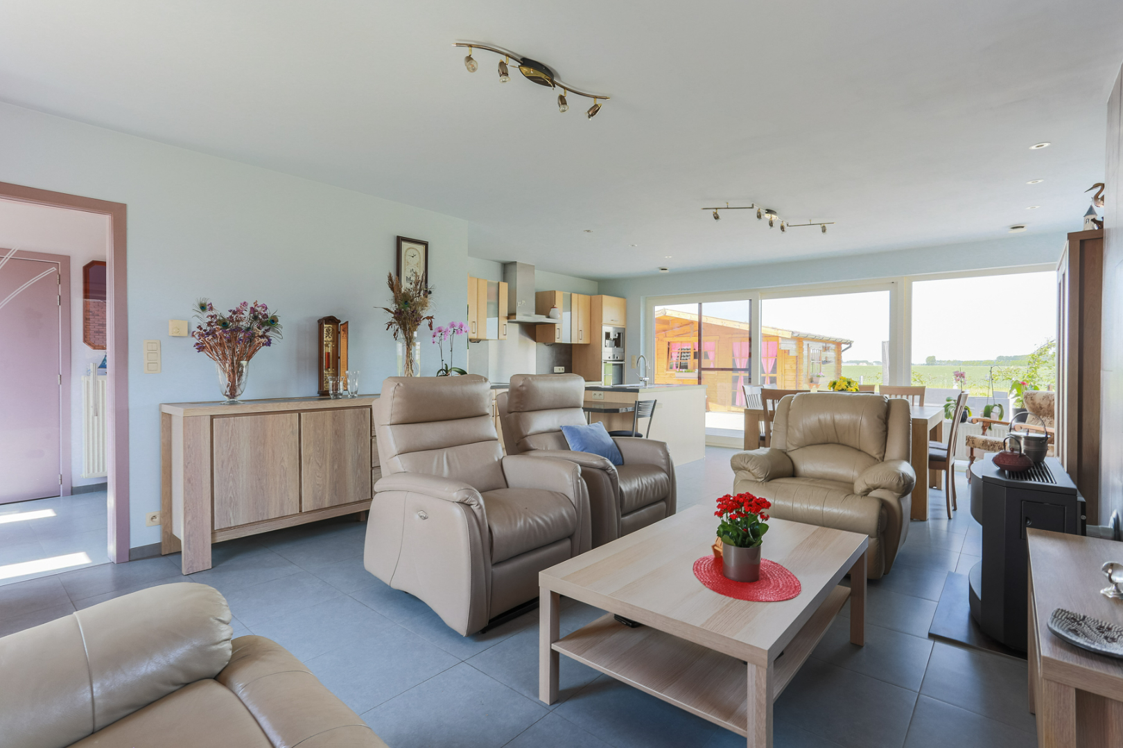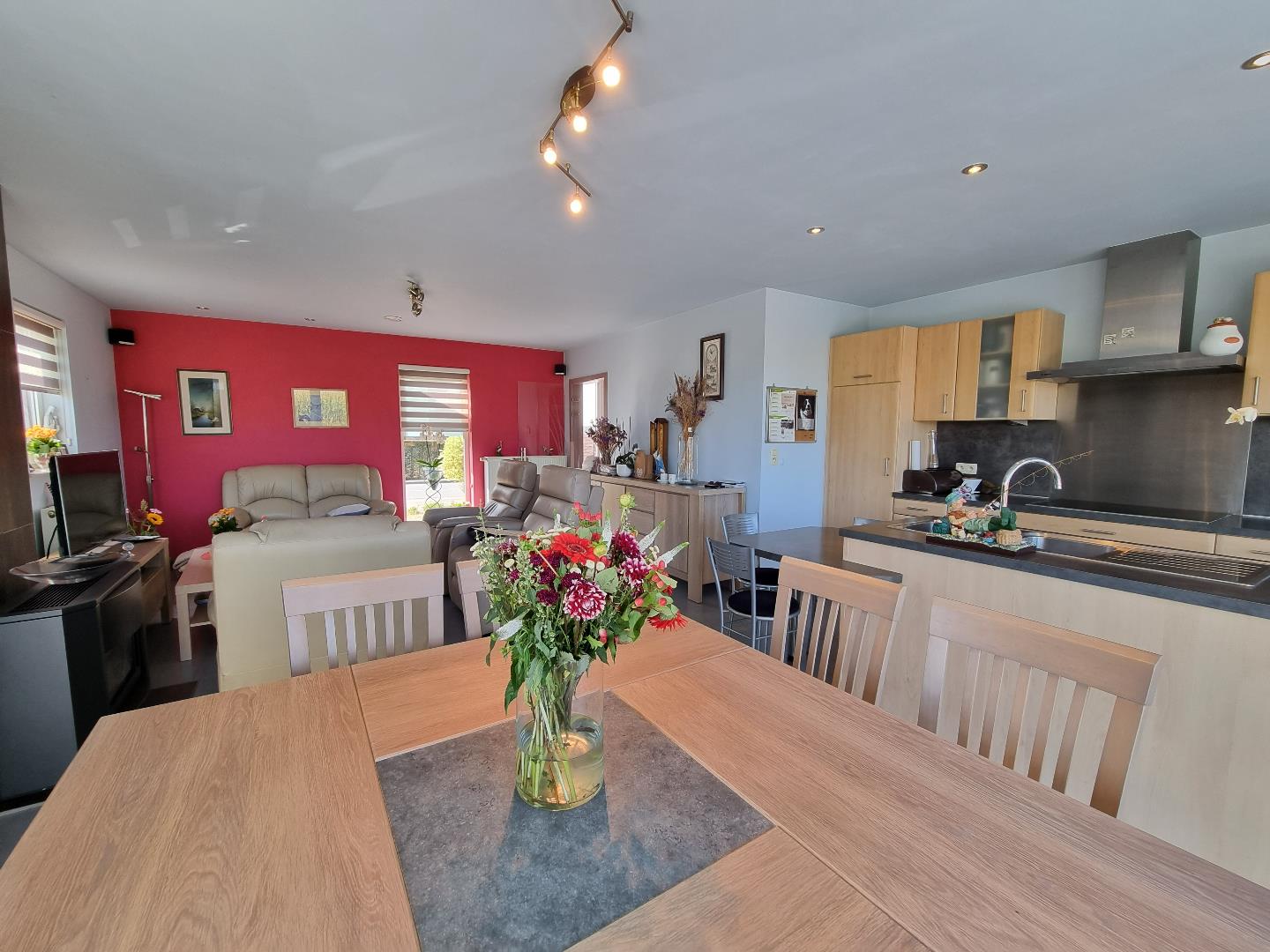 Tussen de polders en akkers vinden wij deze recente energiezuinige halfopen bebouwing met mooi aangelegde tuin en unieke zichten op het omgevend landschap. Indeling is alsvolgt: ruime inkomhal, gezellige leefruimte met open keuken en veel lichtinval + grote glaspartijen met zicht op terras en tuin. Op het gelijkvloers bevindt zich verder een slaapkamer met moderne badkamer en ruime garage. De eerste verdieping telt 2 slaapkamers met steeds mooie zichten en erbij horende badkamer met douche. Aantrekkelijk is ook de grote polyvalente ruimte (perfect voor 4de grote slaapkamer). Extra bergruimte op zolder. Er werd veel aandacht besteed aan de energiezuinigheid: 10 nieuw geplaatste zonnepanelen en volledige isolatie van de woning. Heel recent werd nieuwe airco geplaatst zodat het op warme zomerdagen lekker fris is binnen. Deze instapklare woning is ook geschikt voor mensen met verminderde mobilititeit. Bel naar Inge 0477 57 47 68 of inge@ingimmo.be voor een bezichtiging.