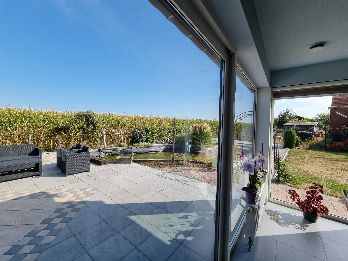 Tussen de polders en akkers vinden wij deze recente energiezuinige halfopen bebouwing met mooi aangelegde tuin en unieke zichten op het omgevend landschap. Indeling is alsvolgt: ruime inkomhal, gezellige leefruimte met open keuken en veel lichtinval + grote glaspartijen met zicht op terras en tuin. Op het gelijkvloers bevindt zich verder een slaapkamer met moderne badkamer en ruime garage. De eerste verdieping telt 2 slaapkamers met steeds mooie zichten en erbij horende badkamer met douche. Aantrekkelijk is ook de grote polyvalente ruimte (perfect voor 4de grote slaapkamer). Extra bergruimte op zolder. Er werd veel aandacht besteed aan de energiezuinigheid: 10 nieuw geplaatste zonnepanelen en volledige isolatie van de woning. Heel recent werd nieuwe airco geplaatst zodat het op warme zomerdagen lekker fris is binnen. Deze instapklare woning is ook geschikt voor mensen met verminderde mobilititeit. Bel naar Inge 0477 57 47 68 of inge@ingimmo.be voor een bezichtiging.